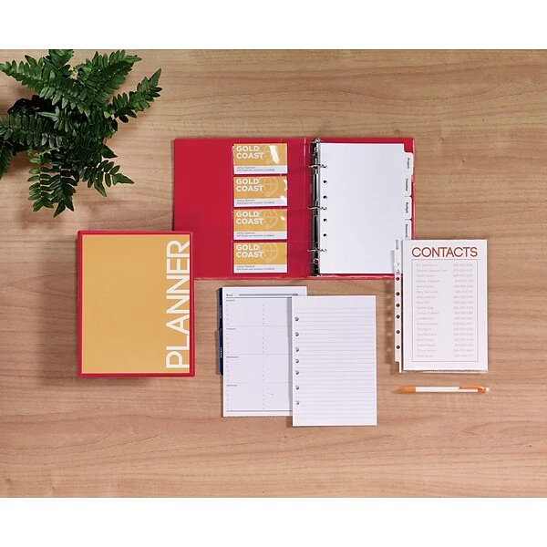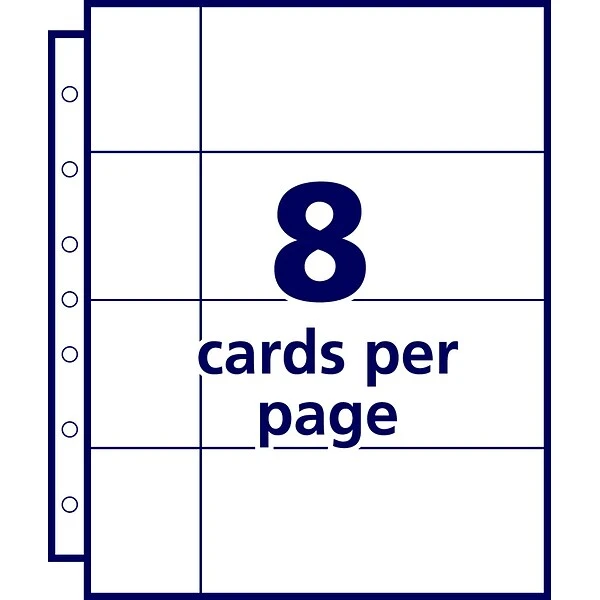Avery® Business card page is compatible for use with 3 or 7 ring 5 1/2″ x 8 1/2″ binder and each page can hold 8 business cards. Page is made of polypropylene material that offers better durability and can hold 2″ x 3 1/2″ business cards.