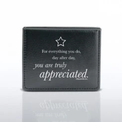 Baudville® Note holder featuring “Truly Appreciated” theme comes with vinyl case having a flip top and sticky notes in three different sizes with a retractable pen.