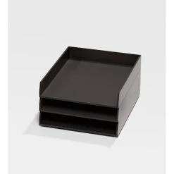 Bring some style into your office or home with the Bindertek Bright Desk Organizing System. Brightly colored wooden desk organizers help you personalize your workspace while staying organized. Kit includes three Bright Letter Trays which are stackable, making for the perfect storage option for desktop papers and files. They can also be shifted to allow for additional access to each tray. Designed in Germany, the Bindertek Bright Desk Organizing System is made out of plywood from sustainable forestry, stained in beautiful, bold colors, intended to help keep your desktop clutter under control and your workspace looking great! Each item comes with foam rubber feet, allowing versatile usage on any surface. Build out your system by purchasing additional components, including Letter Box, Magazine File, Storage Box Set, and Pencil Cup, all in a range of great color options.