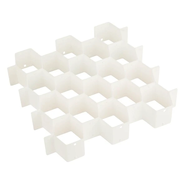 Honey Can Do 32 Compartment drawer organizer measures 2.75 x 15 x 17. Drawer organizer in white color offers connections to multiple units.