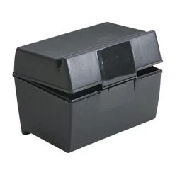 Store important notes, receipts, contact information and more easily with this index card file. The snap design makes this box simple to assemble, while the strong fiberboard material and moisture-resistant laminate exterior offer added durability and protection. This Snap-N-Store black index card file comes with a chrome label holder on the front for quick identification of contents.