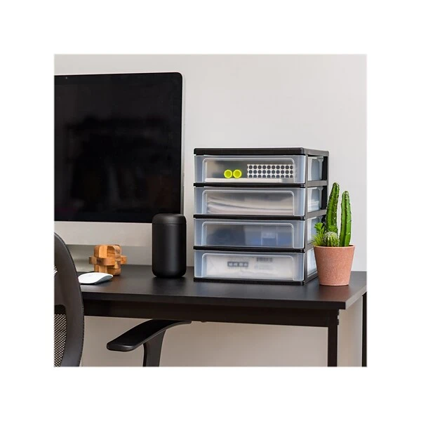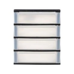Store more with more space. The Iris 4-drawer desktop units are great for maximizing storage. Great for your home, office or garage to clean up your desktop or shelf. Put anything from makeup brushes, first aid, craft, and office supplies. This clear drawers make it easy for you to see where and what you’ve placed. Save some space by stacking the units. Organize and declutter your workspace or living area. Made in the USA.