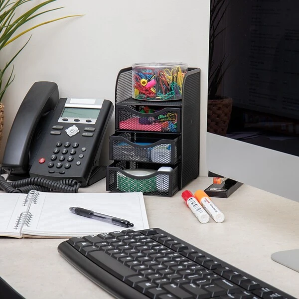 Your desk is probably messy and chaotic with all of your stationery items scattered in your drawers and on your desk. Keep your supplies in the drawers to allow for a neat and clean desk.