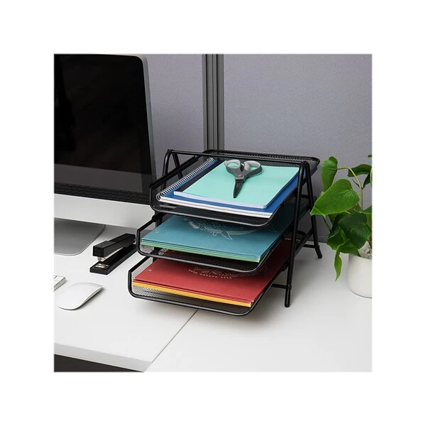 - Multi-tiered for ample storage: Go vertical to free up desk space with three spacious trays that slide out for easy access to files, mail, documents, folders, bills, and letters and avoid paper clutter on your desk or counter