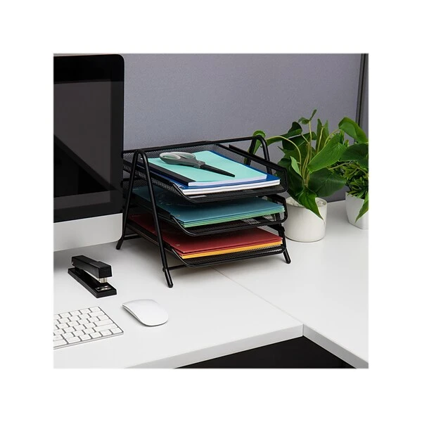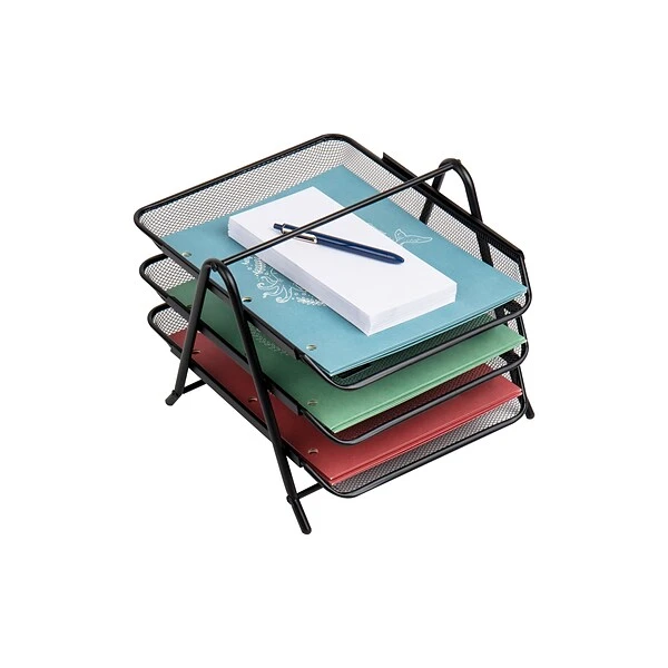 Corral ClutterWith two 3-tray desk organizers, you have twice the storage options. Every inch matters when space is tight in a college dorm, work-from-home setup, or cubicle. Use one sliding tray paper organizer for your desk or workspace and the second for storing and organizing makeup tools and accessories, tidying kitchen supplies such as sandwich bags and foil, or organizing each month’s bills and paychecks. Use a screwdriver to assemble your desk organizer. Take your time lining up the holes to insert screws to ensure a level, stable desk organizer that won’t wobble. The attractive, durable design of the paper organizer is made of metal mesh in a sturdy frame design. Keep it clean with regular dusting or a wipe down with a clean cloth.Gift the second desk organizer to a friend or family member who loves organizing recipes, favorite magazine articles, crafting or scrapbooking, or needs a helping hand tidying up a home office, desk, shelf, or cluttered dorm room.