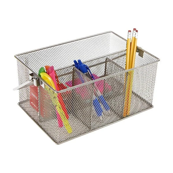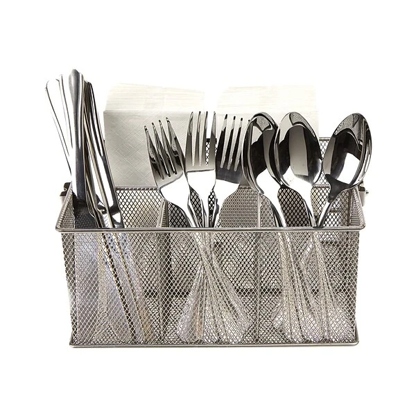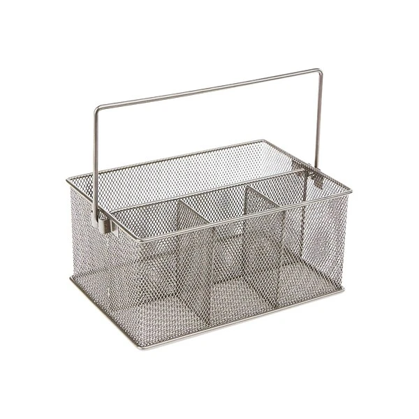 Stay Organized Even on the GoFrom utensils used for eating to those used for writing, this countertop or desktop organizer holds them all. This caddy can also be used for storing craft items like cotton balls, pipe cleaners, glue sticks, and paintbrushes. You can even use it as a storage location for all your TV, DVD, VCR, and gaming remotes to save time from hunting for them under couches and cushions.Outdoor gatherings often include food and drinks, leading to the need for utensils and straws. Storing kitchen utensils in this caddy as a utensil holder keeps forks, spoons, knives, napkins, and straws off picnic tables, organized and ready to use. Utensils and other supplies are often hard to track down in crowded cabinets and drawers. You can keep utensils, office supplies, and other necessities in a separate caddy for quick retrieval. This caddy has four compartments, so you have lots of room to fill while helping you declutter other spaces simultaneously.This caddy organizer does not take up much space on counters or desks, and the included handle makes transporting your essentials easy to manage. The sturdy metal mesh construction is easy to clean with a damp cloth and is durable for years of enjoyment.Being able to stay organized, even on the go, helps take some of the work out of a hectic lifestyle. This organizational caddy is a great gift idea for teachers, daycare workers, and parents and makes the ideal gift for the hosts and hostesses in your life.