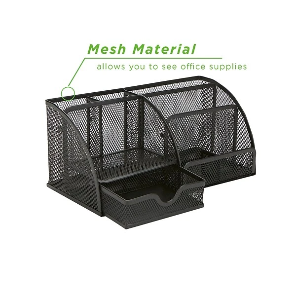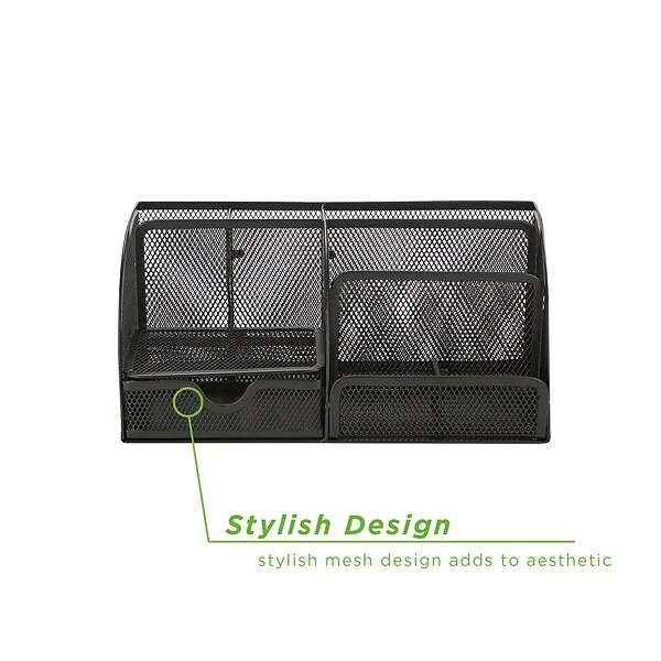 Stay organized with this mesh organizer. This compartment storage is a great accent to any office and allows you to personalize while helping keep your workspace neat and tidy. The steel mesh design is both appealing and durable to withstand even the toughest working day.