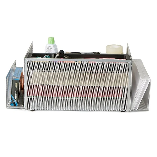 Mind Reader Network Collection 6 Compartment Front Loading Letter Tray With Side Storage, Silver Wire Mesh (4TSIDE2-SIL)