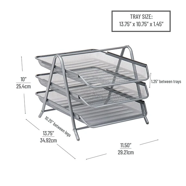 Mind Reader Network Collection Front Loading Letter Tray, Letter Size, Silver Wire Mesh (3TPAPER-SIL)
