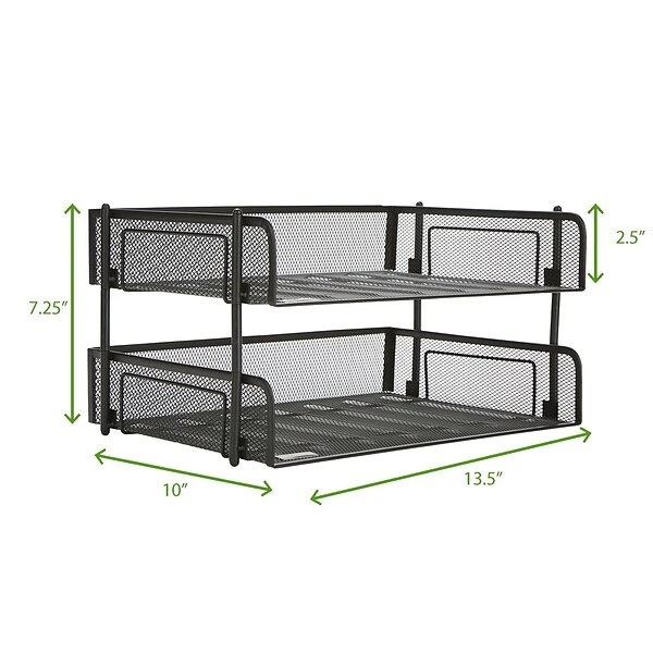 Keep your desk organized and clean with this stackable metal mesh desk tray organizer for extra storage. The tray will help you stay organized at your desk in the office or at home. No more scattered paperwork, misplaced folders, or lost pens and pencils. Instead, this will keep everything within your reach.