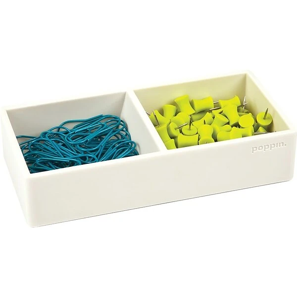 This silicone tray features two compartments for maximum organization.