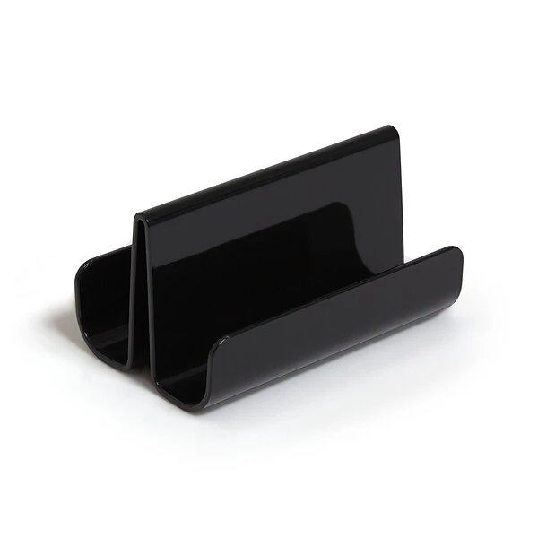 Network with potential clients and customers at the office when you use this this business card holder. The low-profile silhouette lets the decorative details of your cards show through, while the angled setup provides easy access when you need to share your contact information. With a neutral color, this TRU RED™ black business card holder coordinates seamlessly with other TRU RED™ desk accessories.