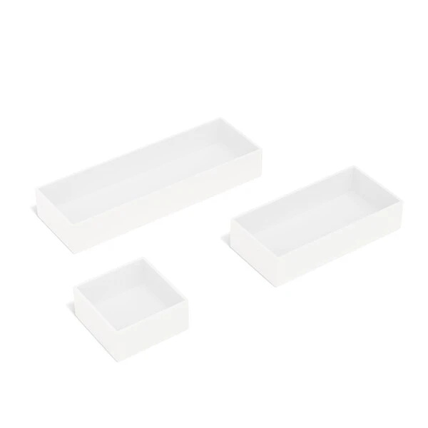 - Made using a more durable plastic, this white matte finish organizer set can be used stand alone or mixed and matched with other pieces