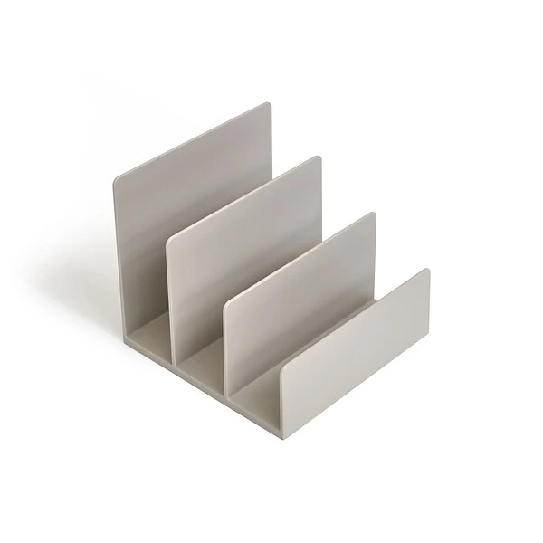 Assign paperwork, notebooks, and envelopes their own dedicated space with this letter sorter. The gray color brings a fresh, contemporary look to your desk or credenza, and the three slots hold contents upright for quick and easy access. With a low-profile design, this TRU RED™ gray three-slot letter sorter coordinates seamlessly with other TRU RED™ organization and storage tools for a professional appearance.