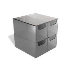 Keep your workstation neat and streamlined with this cube-shaped desktop oganizer. The four compartments let you separate different items, while the smoke finish and cube shape enhance your desk setup. Store smaller items, including paper clips and staples, in the generous interior. This TRU RED cube-shaped smoke storage drawer lets you easily add more cubes for easy expansion and an orderly setup.