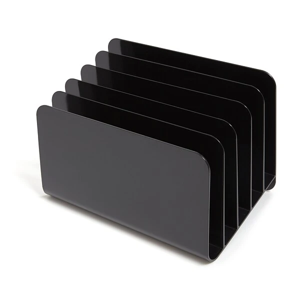 Select and sort your mail for organization and ordered review with this incline sorter. The staggered design displays stored envelopes clearly, and five individual compartments provide plenty of space for grouped storage. This plastic TRU RED™ five-slot incline sorter’s considered sizing leaves ample room for other workspace tools atop your desk, while the neutral black tone delivers a sophisticated business-ready look.