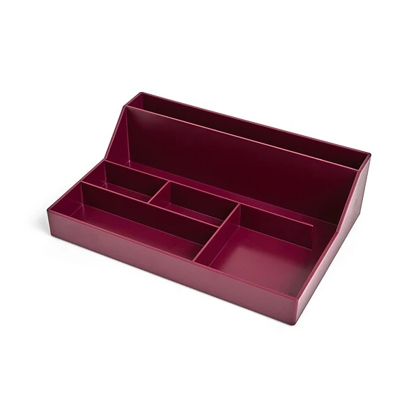 Access sticky pads, paper clips, and other small office supplies while you are busy at work with this desk organizer. Six compartments in an array of sizes make it easy to assign homes to the items you use most, and the bright jewel-tone hue makes a decidedly contemporary style statement. This TRU RED™ purple six-compartment organizer works with other TRU RED™ desk accessories, so you can create a personalized storage setup.