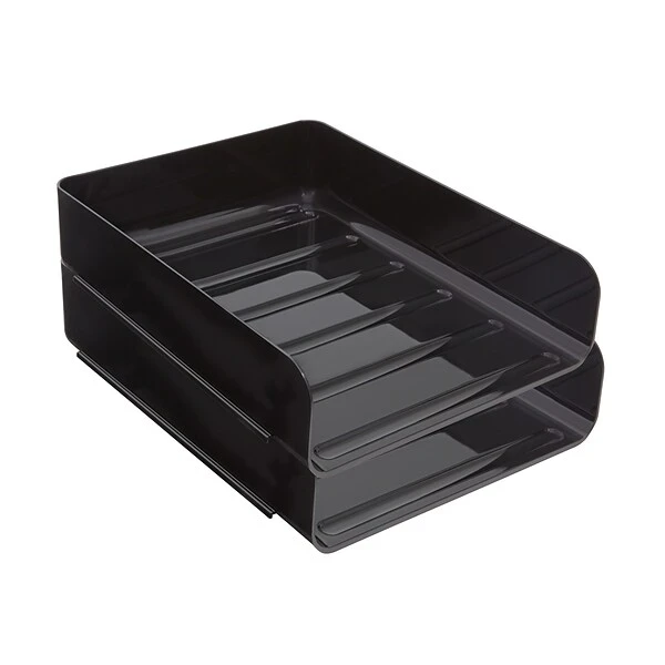 Sort paperwork by priority or project for better productivity with these letter trays. The front-load design makes it easy to grab that important file folder before a meeting, and the stacking design allows for a more personalized desk setup. These TRU RED™ black front-load letter trays provides a convenient document storage option.