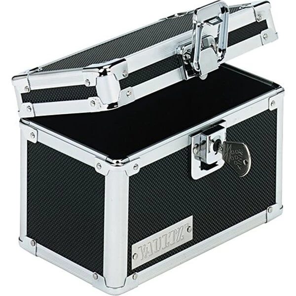 The Vaultz 350-capacity black locking index card box is a great storage place for index cards, recipes or pictures. It has steel corners, aluminum reinforcement and a soft felt interior for added protection with better comfort. It secures up to 350 3″ x 5″ index cards. This locking index card box measures 4 1/4″ x 6 1/4″ x 4″ and features reliable key lock that gives security. It is suitable for general storage of valuables and personal items.