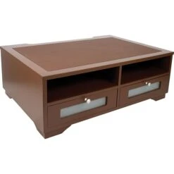 - Brown Desk Organizer Features Three Small Compartments For Storing Knickknacks