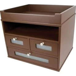 Organizer makes the most out of limited space by combining a letter tray, shelf and three drawers.